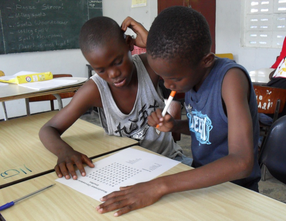 Allerlei spelvormen worden ingezet om de kinderen te enthousiasmeren voor taal: letterspelletjes, toneel, verhalen vertellen etc. Zo gaan ze met hun zelfgemaakte paspoort op reis door allerlei landen, krijgen door verschillende spelletjes informatie over die landen en moeten als afsluiting quizvragen beantwoorden. De activiteiten worden uitgevoerd door Nederlandse stagiaires en vrijwilligers. Coördinator Susanne Dekkers: "We letten er op dat we geen Hollandse spelletjes doen, maar onderwerpen nemen waar de kinderen zich echt in kunnen herkennen." Club Unu Pikin wordt georganiseerd op de OS I Flustraat, OSII Geyersvlijt, OS Peu et Content en zal binnenkort starten op de Büchnerschool. De stichting heeft deze scholen geselecteerd omdat zij daar een bibliotheek heeft ingericht of er plannen zijn dit te doen. De activiteiten lopen tot het einde van het schooljaar, wanneer ze feestelijk worden afgesloten. Ook volgend schooljaar zal Club Unu Pikin de scholen blijven bezoeken. - top / home -PROFOUNDSOLUTIONS STEUNT UNU PIKIN (april 2009)