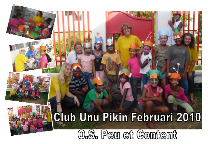 De afgelopen periode hebben weer heel wat Nederlanders bij Unu Pikin in Suriname de handen uit de mouwen gestoken. Jan-Jaap is met vrouw en dochter voor 6 maanden naar Suriname gekomen en heeft zich verdienstelijk gemaakt in de werkplaats. Henk heeft met zijn gouden handjes veel defecte machines gerepareerd, van kleine handschuurmachine tot grote zaagwand. Nirman heeft zich tussen zijn stage door bezig gehouden met de computers en Rian en Noor hebben meegeholpen met de activiteiten van de kinderclub. Stagiaire Jacintha heeft de wekelijkse sport- en spelactiviteiten ingevuld die op het veld naast de werkplaats werden georganiseerd. Marjolein heeft tijdens haar tien maanden stage zich eerst bezig gehouden met Club Unu Pikin en met de sport- en spelmiddagen en daarna ook met allerlei andere projecten, zoals de computers voor de Calorschool en de geschenktassen voor Wanhatti. Bedankt allemaal! - top / home -CLUB UNU PIKIN OOK IN KINDERTEHUIS (april 2011) Uit Nieuwsbrief nummer 12: